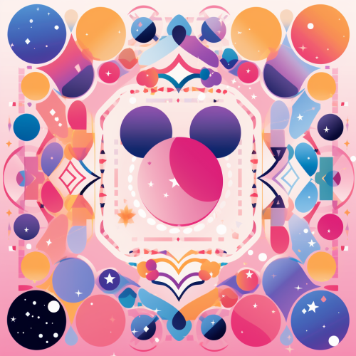 "A Disney-inspired colorful card back design, featuring a mix of geometric shapes and whimsical patterns. Include a variety of colors such as vibrant pinks, blues, yellows, and purples. The design should have elements like stars, swirls, and diamonds in a playful arrangement, creating a magical and enchanting look. Ensure the pattern is symmetric, detailed, and visually captivating, resembling the charm and style seen in Disney animations." --v 5.2 --s 50