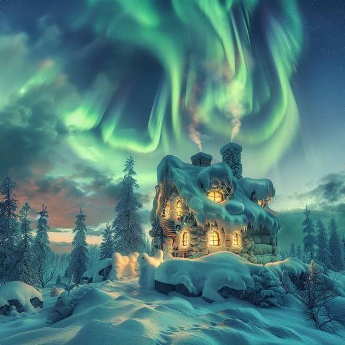 High above the Arctic Circle, where the Northern Lights dance in rainbow colors across the sky, there stands a magnificent workshop made of gingerbread and candy canes. This is where Father Christmas lives with Mrs. Claus and all his magical elves. One morning, as the first snowflake of winter drifted down from the clouds, Father Christmas knew it was time to begin preparing for his most important night of the year. --s 250 --v 6.0