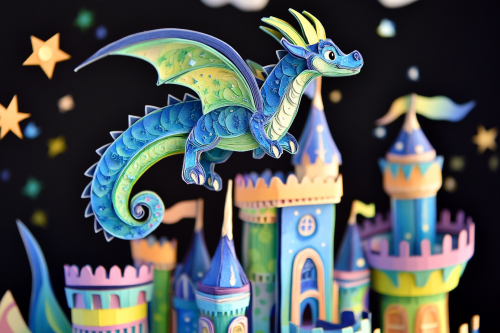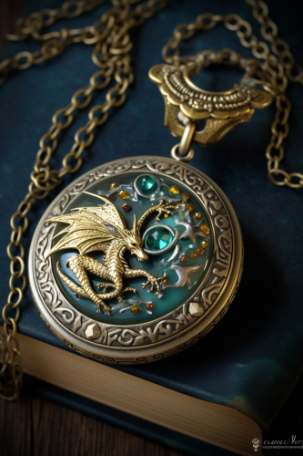 Whimsical book featuring a magical amulet or seal at the center, with intricate dragon symbols, stars, and ancient runes. Circular amulet design with metallic tones of gold, silver, and bronze, iridescent accents in blue and green. Soft, enchanting glow around the amulet, giving a mystical and protective look. The background features a friendly, adventurous dragon and a magical landscape, with castles and forests Fantastic . Child-friendly, fairytale book atmosphere --ar 2:3 --v 5.0