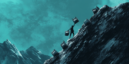 Generate a digital art for A digital art scene showing a person making a payment higher than the minimum required amount. The background features a gradient of #0A6572 with abstract shapes representing financial growth and stability. The person is holding a credit card and a stack of coins, symbolizing the effort to pay more than the minimum payment. --ar 5:3