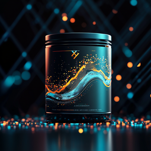 A dynamic, futuristic label design for a candle inspired by the imagery of a digital wave made of XRP cryptocurrency symbols. The wave is depicted as a glowing tsunami of sleek, metallic XRP logos, crashing across a modern, abstract financial landscape. The color palette includes deep blues, silver, and electric neon accents, creating a sense of motion and energy. The label has a clean, minimalist font, with subtle tech-inspired geometric patterns in the background. The overall design feels bold and futuristic, with a hint of elegance.