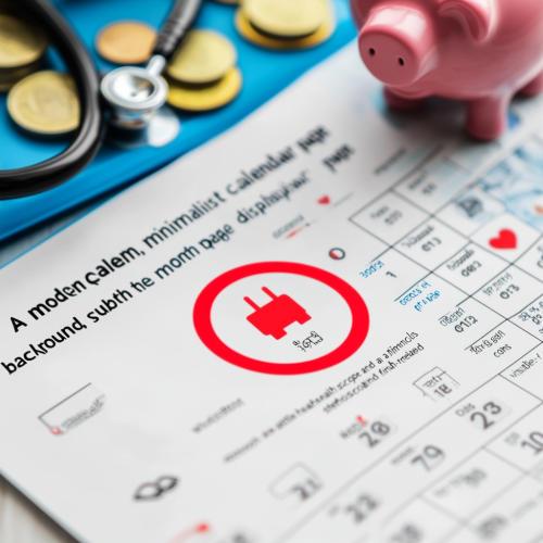"A modern, minimalist calendar page displaying the month of September with the 30th circled in red. In the background, subtle health-related icons like a stethoscope and financial symbols such as coins and a piggy bank are faintly visible."
