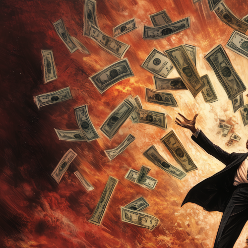 Coins or money notes returning to an open hand, highlighting the idea of recovery.