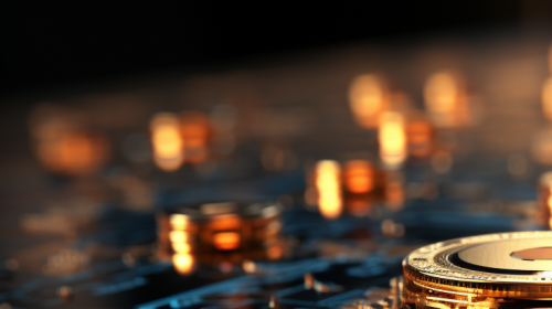 An intricate web of financial transactions illuminated by the glow of artificial intelligence algorithms, showcasing the article's focus on AI's role in Anti-Money Laundering (AML) and risk management. --ar 16:9 --s 1000 --v 5.2