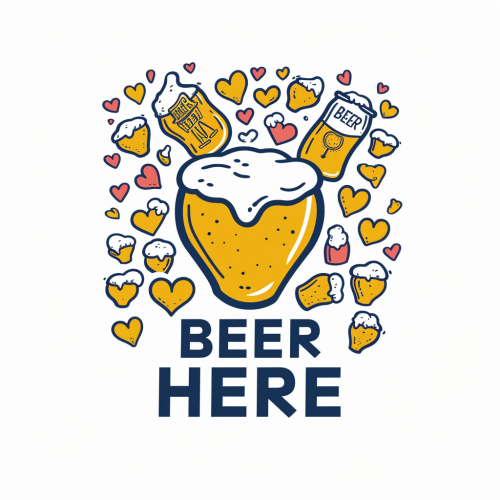 logo for a dating app where people have to drink beer, the company is called "BEER HERE" with hearts and beers --s 200 --v 6.0 --style raw