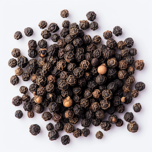 Black Peppercorns on a white background , fresh, delicious, almost constant color black pepper --relax --v 6.0