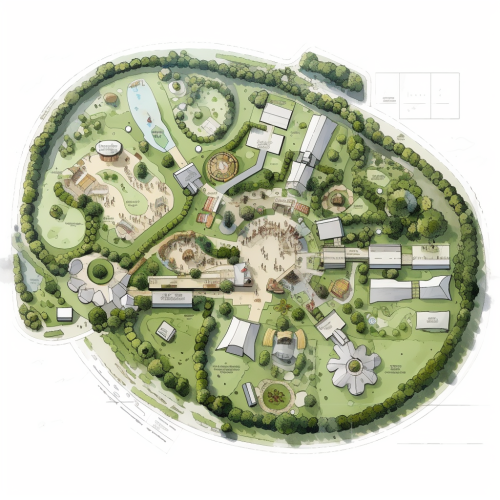 design a layout for a camping site for a festival, Paradise City in Brussels, with a capacity for 5500 people. There should be a comfort zone for glamping. Integrate a nice food court. The theme for the camping should be sweet harmony. The campsite is located close to a castle. The can be some art involved. There should be a yoga zone and a chill out area. The style should be bohemian