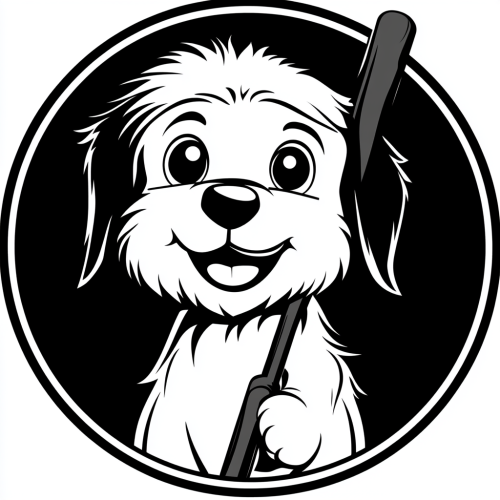 dog sherpa monochrome logo, circular, graphic. techy. only 2 lines allowed. ony two lines! like a siloette of a snoopy dog and sherpa staff. silicon vslley tech company, sleek, icon.