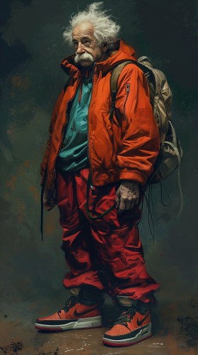 albert einstein, wearing travis scott nike sneaker, cool outfit --c 4 --ar 9:16 --v 6.0