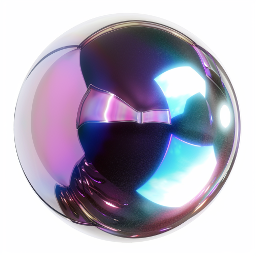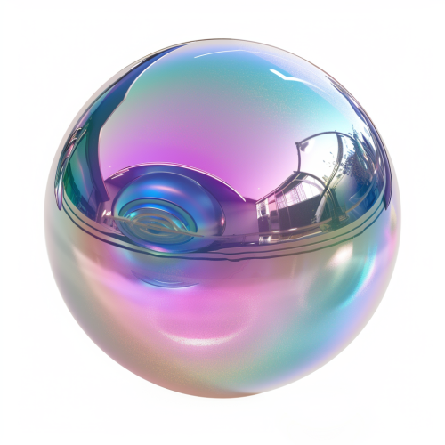 a perfectly round 3D orb with a transparent PNG background, super metallic and reflective surface with a goniochromism / iridescent finish reflecting a void-like space --v 6.0