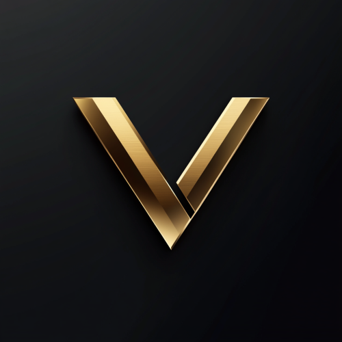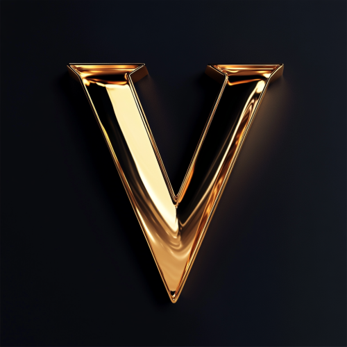 A sleek and elegant 3D logo design in a luxurious golden metallic style. The letter 'L' should be positioned above the letter 'V', with the short horizontal line of the 'L' perfectly aligned with the top open part of the 'V', creating a triangular shape when combined. The 'L' and 'V' should seamlessly fit together, forming a unified, geometric design. Both letters should have a metallic gold finish, with realistic lighting, smooth reflections, and subtle shadows. The background should be dark and minimalist, enhancing the shiny and polished appearance of the golden letters. The overall look should be modern, bold, and visually balanced.