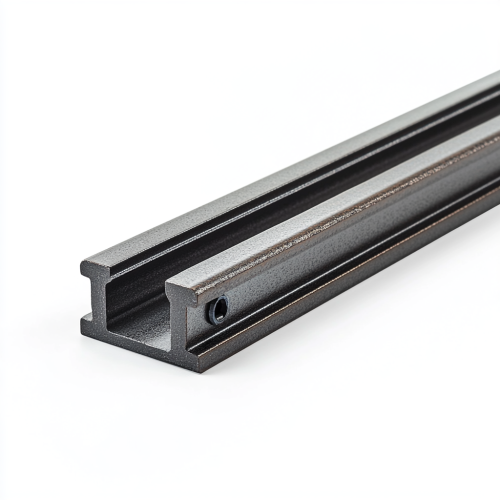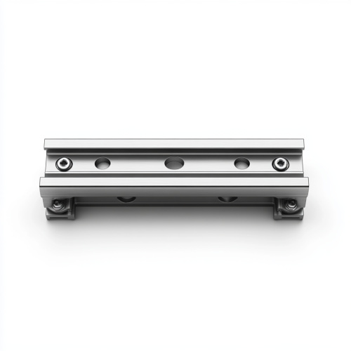 DIN rail, metallic and rectangular, top view with no perspective, beautiful polished metal finish, isolated on a white background, no shadows –ar 1:1 --s 250 --style raw