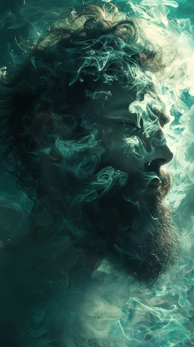 A captivating and surreal digital artwork by Hans Darias AI, depicting the harmonious integration of a Man’s side profile with a stunning landscape. The Man’s figure has flowing brown hair that flows like a river, blending with the waterfall in the background. His cheeks resemble the texture of the bark of a towering pine tree, while his lips resemble the surface of a calm lake. The golden light of the setting or rising sun bathes the entire scene in a warm and ethereal light, creating a profound connection between the Man and the surrounding nature. --ar 16:9 --s 750