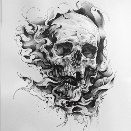 Hooded skull , front view , ultra realistic , black and white , ink drawing --ar 9:16