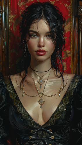d&d gothic middle-aged Vampire women with pale skin with black hair in an elegant silk robes in a digital paint art, gloom, dim lighting --s 900 --v 6.0 --ar 17:30