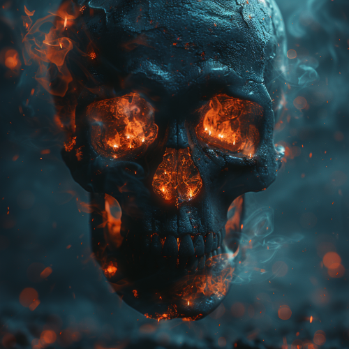 amazing skull with horror elements and terrifying extraterrestrial matter, light coming out of the eye sockets and jaw, amazing dynamics, amazing detail, blended background, frontal positioning, light emphasizing horror, light from below, 8k, --s 750 --c 60 --v 6.0