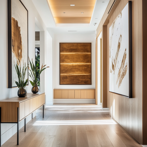 Generate a digital art for A digital art scene depicting a person standing at the intersection of personal and professional growth paths. The background is a blend of soft pastel colors with the primary color being light gray. The person is surrounded by symbols of success and fulfillment, such as a blooming tree and a rising sun, representing a more fulfilling and successful life. --ar 1:1