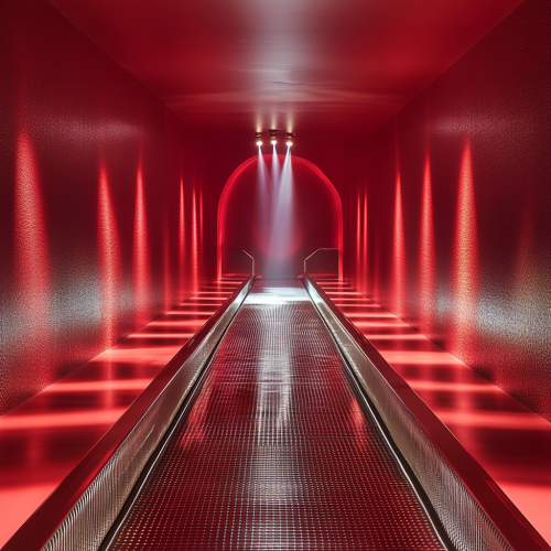 Develop a straight walkway for a stage with wavy garden pattern along the pathway with plants placed on it. With few illuminations of light along the walkway