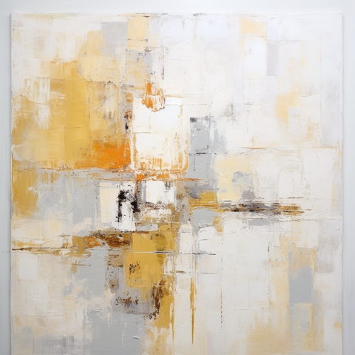 abstract acrylic piece made with palette knife. Bold and muted hues, contemporary art. The painting is made with large patches of muted light colors and fresh yellow paint. The colour palette must be limited