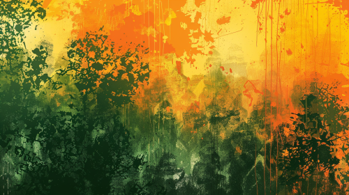 abstract forest background. colours are orange, green, yellow --ar 16:9