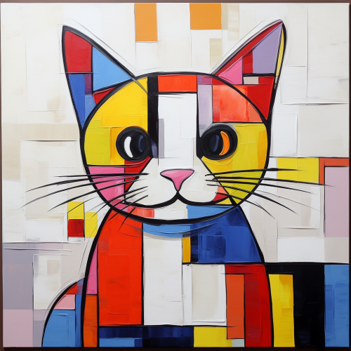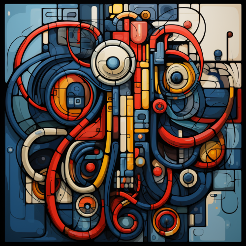 abstract cthulhu in style of piet mondrian, blue white black, yellow red orthogonal --s 250 --v 5.2