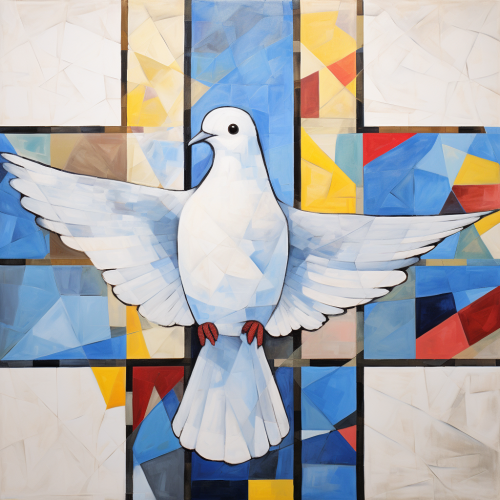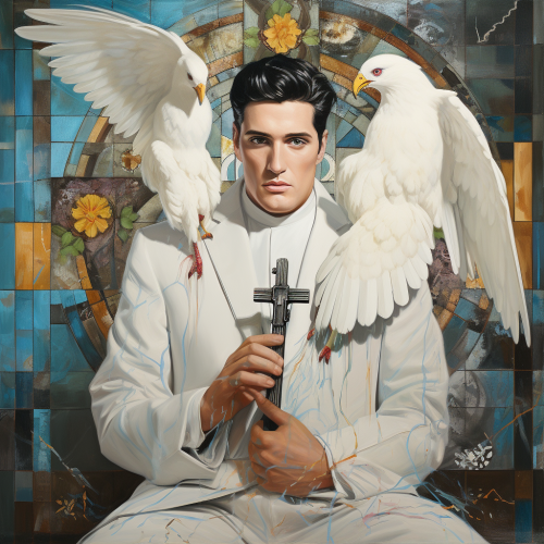 Elvis presley as a dove, in a cineastic sceene of a chritopher nolan film, painted by mondrian