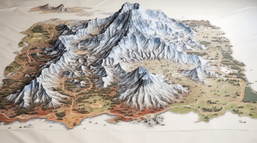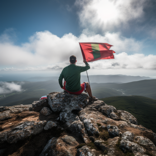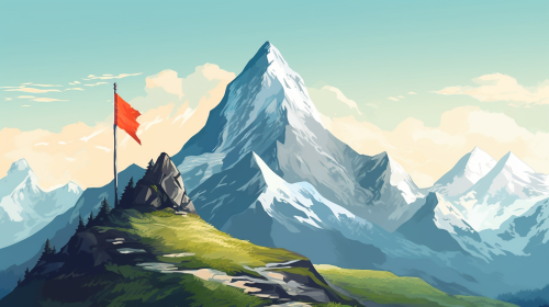 an illustrator of a beautiful mountain peak with a flag planted at the summit --ar 16:9 --v 5.0 --s 750