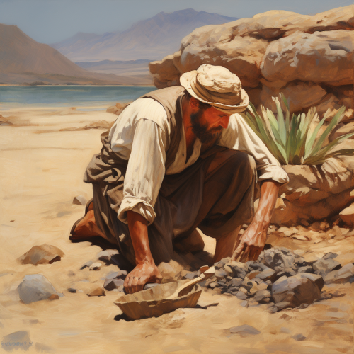 an egyptian farmer digging for fertilizer under a rock discovering the dead sea scrolls
