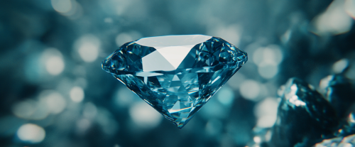 Generate a digital art for A sparkling diamond, showcasing its brilliance and durability, formed under high-pressure and high-temperature conditions deep within the Earth's mantle. The diamond is depicted with a blue hue (#0A84FF) to emphasize its value and allure, set against a clean, contrasting background to highlight its sparkling facets. --ar 12:5