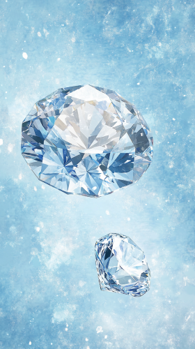 Generate a digital art for A large, sparkling diamond floating in the center of the screen with a smaller diamond positioned slightly below and to the right. The background is textured with a subtle gradient of the primary color #0A84FF, creating a smooth and elegant backdrop. The diamonds are rendered in shades of white and light gray to contrast against the blue background. A soft shadow falls beneath each diamond, adding depth and dimension to the scene. The overall atmosphere conveys luxury and sophistication, with the diamonds being the focal point while ensuring the background remains unobtrusive to slide content. . --ar 9:16