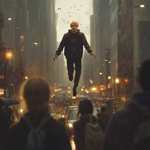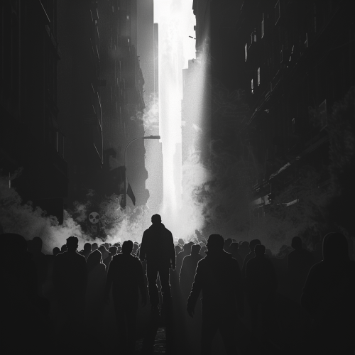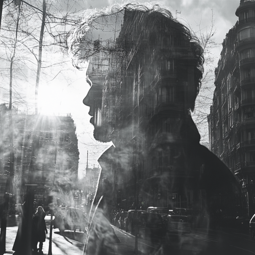 street photography. a photo with multiple exposures, a busy street scene, black and white. A man out of his element. Artistic, Andy Warhol style. --v 6.1 --style raw --s 750