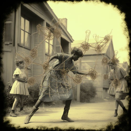 the Charleston dance of 1920, an old photograph of a dancer with dancers, in the style of made of wire, flower power, works progress administration (wpa), avian-themed, dappled,
