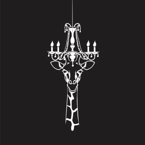 minimal silhouette logo, full body giraffe with a chandelier wire in its mouth and the chandelier hanging down, line vector, raylectric --v 6.0