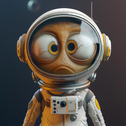 cute confused alien astronaut in Pixar style similar to minions, funny lettering "KEEP --v 6.0