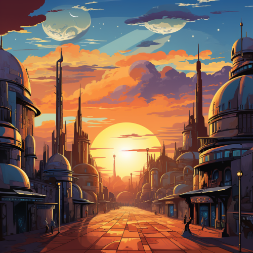 Coruscant city from Star Wars, flat design cartoon, --v 5.2 --s 250