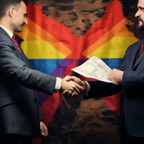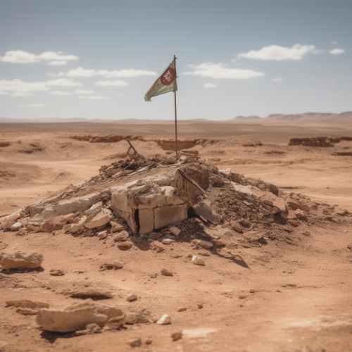 A desert, ravaged by war, with a flag with the symbol of peace stuck on top of a hill --v 5.0 --s 250