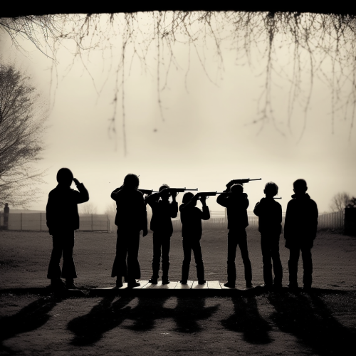 silhouette picture of firing squad aiming at children --v 5.0 --s 750