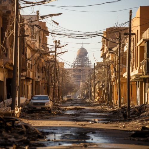 A picture of the city of Khartoum, beautiful and clean buildings, a background of a picture of destroyed and burned buildings --s 750 --style raw
