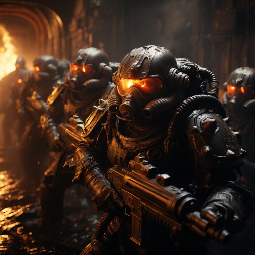 glorious flame thrower troop on the front line, warhammer 40k --v 5.2 --s 750