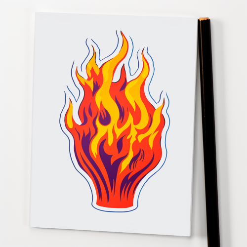 flame sticker design, comic book style of 90s retro illustration, bold white background by David Hockney --s 50 --upbeta