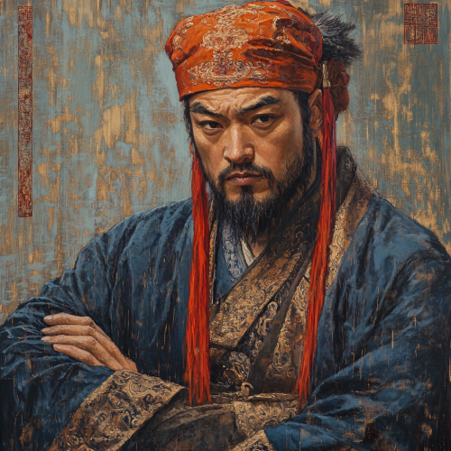 The turban is covered with red tassels, and the wolf's waist and ape's arms are in the shape of a tiger. In the brocade clothes embroidered robe, slightly reveals the deep blue. Men of the Song Dynasty in ancient ChinaSemi-oil painting --v 6.1