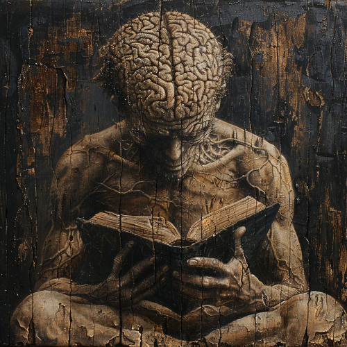 Ancient india, a indian human brain reading a book, in the universe of ancient indian books 11 ar16:9 --s 250 --v 6.0