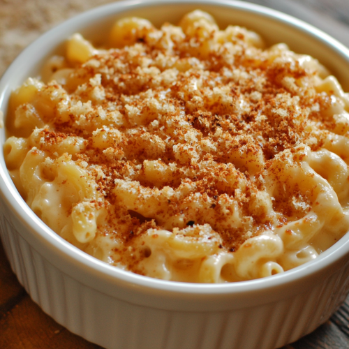 Capture the essence of a Smoky Chipotle Mac and Cheese image for our recipe website. Recipe: 2 cups elbow macaroni 2 tablespoons butter 2 tablespoons all-purpose flour 2 cups milk (whole or 2%) 1 cup heavy cream 2 cups sharp cheddar cheese, shredded 1 cup Monterey Jack cheese, shredded 1/2 cup grated Parmesan cheese 1-2 chipotle peppers in adobo sauce, minced (adjust to taste) 1 teaspoon smoked paprika 1/2 teaspoon garlic powder 1/2 teaspoon onion powder Salt and pepper, to taste 1/2 cup panko breadcrumbs 1 tablespoon olive oil Show off its lacy texture and the perfect balance. Make our readers crave a bite just by looking at your photo. We want to see it in all its mouthwatering glory, ready to inspire cooks and bakers alike. Get creative with your composition, lighting, and styling Make it l