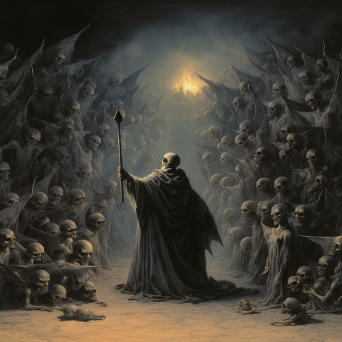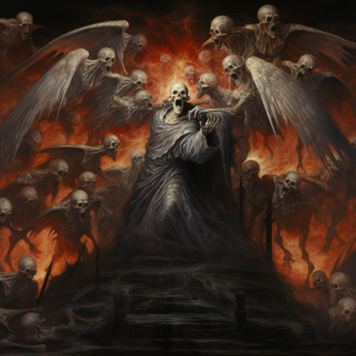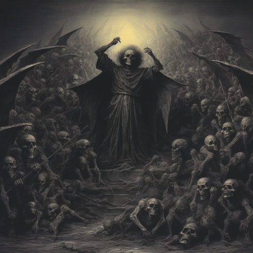 The angel of death taking souls to Hell, souls screaming in pain and torment, Gustave Dore style