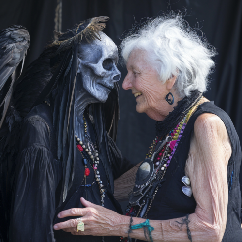 The Angel of Death visits a 60 year old woman, aging hippie, at a music concert. --v 6.0