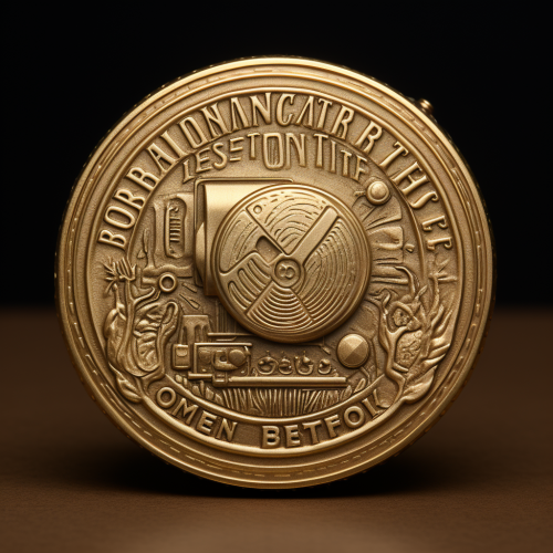 camera facing down on round brass engraving of a burrito and moon with text "BURRITOS AT MIDNIGHT"