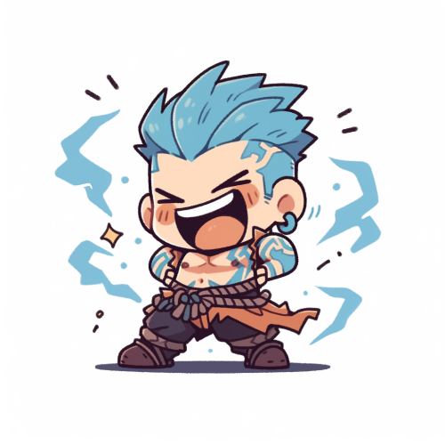 an adorable chibi thunder god with tattoos and piercings laughing, the style of electric punk rock, white background, simple character illustration, Doodle, superflat style illustration, strong linear elements, minimalist --s 250 --niji 5