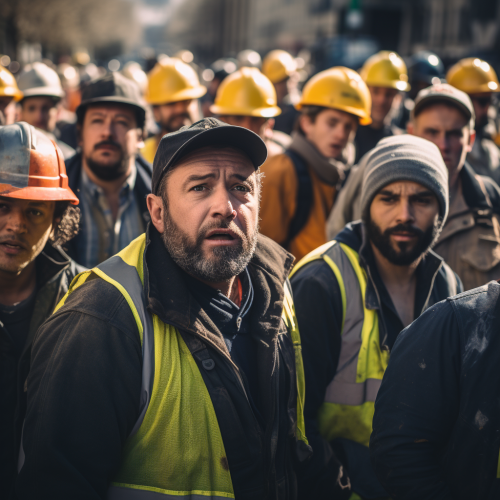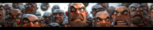 a photo realistic wide view of a crowd of angry people standing in a row --ar 5:1
