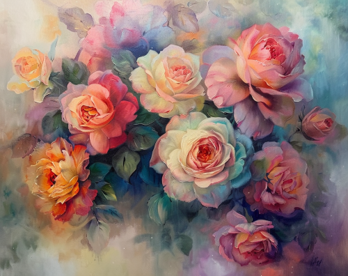 a realism style painting of a bouquet of ethereal celestial roses --ar 14:11