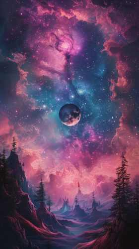 dreamy galaxy theme, featuring pastel-colored nebulae, shimmering stars, and mystical moons, perfect for those who are fascinated by the mysteries of the universe. --ar 9:16 --v 6.0 --s 250